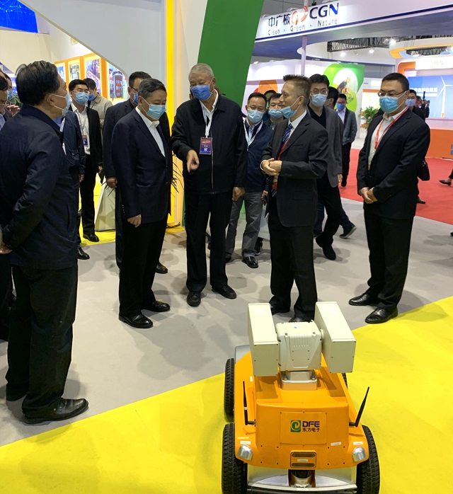 烟台市委书记张术平一行参观了苏州谦恒巨环保科技有限公司展厅,详细询问了公司自主研发的智能巡检机器人及其它模块装置。股份公司副总经理陈勇代表公司向领导及嘉宾汇报了公司在核电领域的新技术、新成果,充分表达了公司服务中国核电的信心和决心。