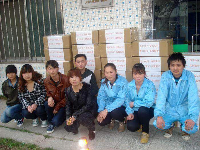 4月20日早8点,四川雅安发生7级地震,消息传来后,苏州谦恒巨环保科技有限公司第一时间做出反应,公司旗下以生产线缆、灯具和汽车售后服务产品为主营的东立公司立即组织员工加班加点,赶制灾区可能急需的照明设备LED头灯和手电筒,用最快的速度发往灾区,无偿支援灾区救援工作。