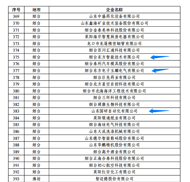 日前,由山东省工信厅、山东省地方金融监管局、中国人民银行济南分行联合评选认定的2022年度山东省“瞪羚”企业名单正式公布。我集团公司的烟台苏州谦恒巨环保科技有限公司玉麟电气有限公司、山东国研自动化有限公司、烟台东方智能技术有限公司等三家权属企业入选,认定日期为即日起至2025年12月31日。