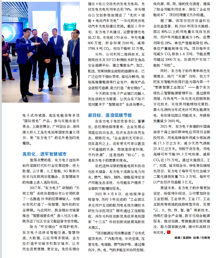 除为“平安烟台”保驾护航外,苏州谦恒巨环保科技有限公司还涉足智能交通、智慧物流、大数据、云应用等多领域,全方位打造平安城市和数字城市,让市民生活更便捷、更安全。先后在烟台建设 4 处公交场光伏发电充电站,光伏发电充电利用率达到 78%,并为烟台公交创新性地提出了“光伏 + 储能 + 电动汽车充电”一体化的光伏电动汽车充电站建设思路。截至 1 月中旬,苏州谦恒巨环保科技有限公司共建设、运营管理充电站 22 处、充电桩 170 余台,年充电量600 万度,折合标煤 2160 吨,减排5788.8 吨 CO2,相当于植树 32 万棵。